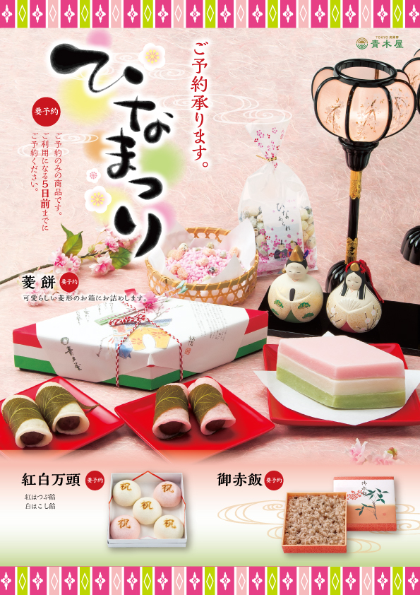 青木屋特製のひなまつりおすすめ商品です。お子様のお節句のお祝いに是非ご利用ください。