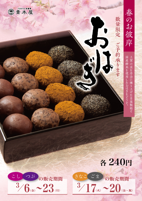 季節限定『おはぎ』3月6日(金)~3月23日(月)まで販売いたします。