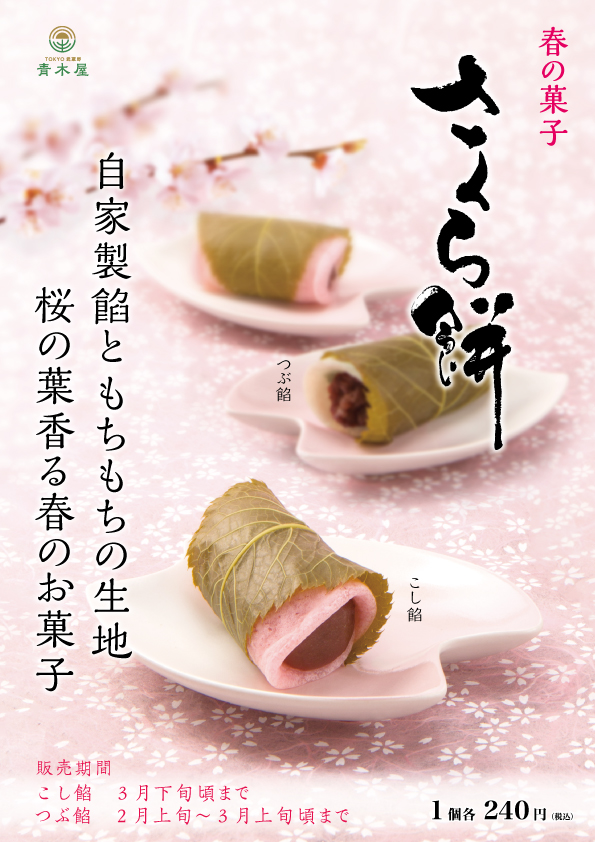 自家製餡ともちもちの生地、桜の葉香る春の和菓子です。